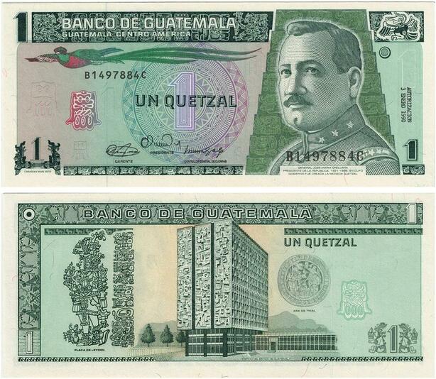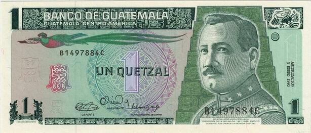 Q0756 Banknote Guatemala 1 Quetzal Jose Maria Orellana 1990 UNC ->Make Offer