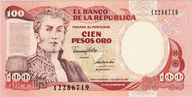Q0766 Banknote Colombia 100 Pesos Oros General Antonio Nariño 1991 UNC