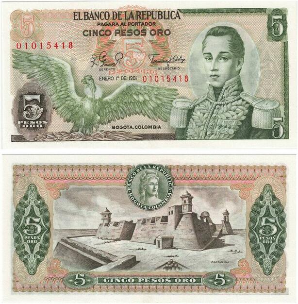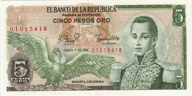Q0775 Banknote Colombia 5 Pesos Oro Cordoba 1981 UNC -> Make offer