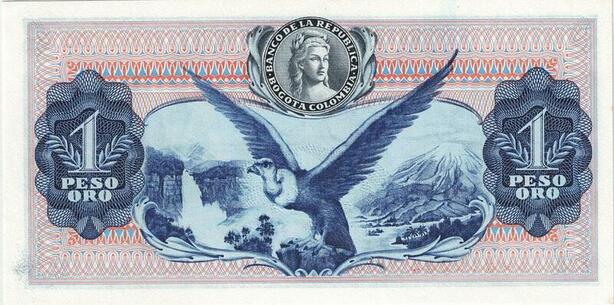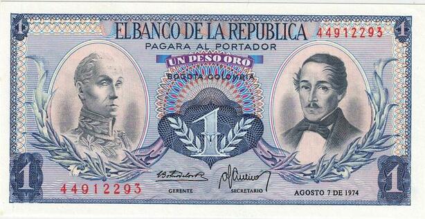 Q0776 Banknote Colombia 1 Peso Oro Simón Bolívar 1974 UNC ->Make Offer