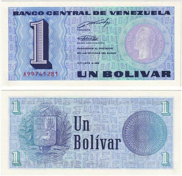 Q0777 Banknote Venezuela 1 Bolivar 1989 UNC -> Make offer
