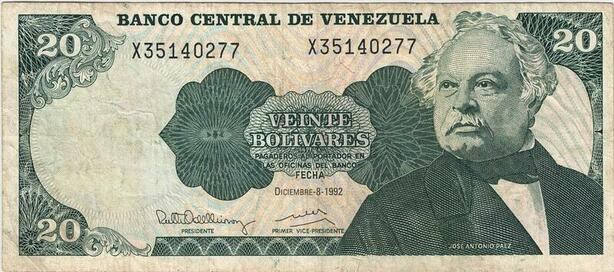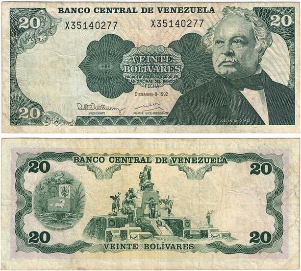 Q0778 Banknote Venezuela 20 Bolivares José Antonio Paez 1992 AU -> M offer