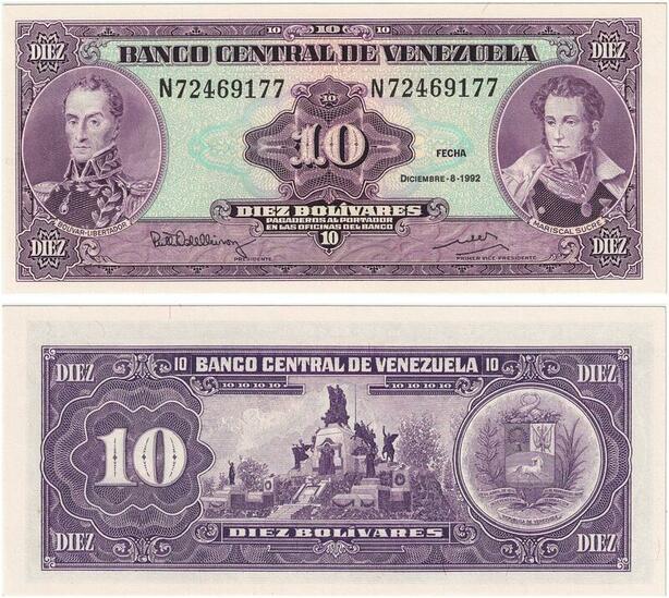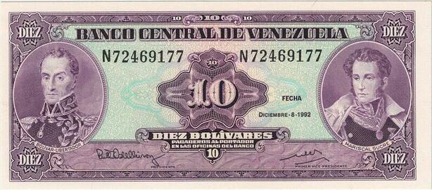 Q0785 Banknote Venezuela 10 Bolivares Libertador & Mariscal Sjre 1992 >Offer