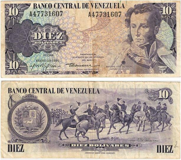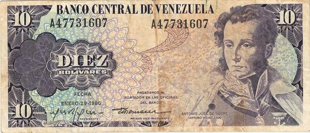 Q0788 Banknote Venezuela 10 Bolivares Arturo Michelena 1980 ->Make offer