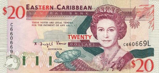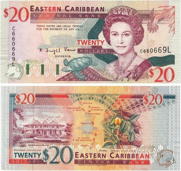 Q0805 Banknote Eastern Caribean 20 Dollars Elizabeth II 1994 UNC -> M offer