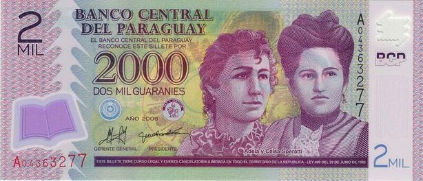 Q0815 Banknote Paraguay 2000 Guaranies Adela y Celsa Seperatti 2008 UNC