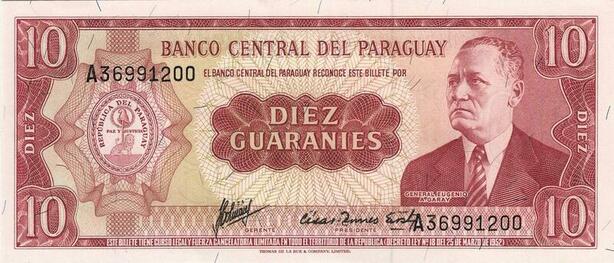 Q0816 Banknote Paraguay 10 Guaranies General Eugenio 1963 UNC -> Make offer