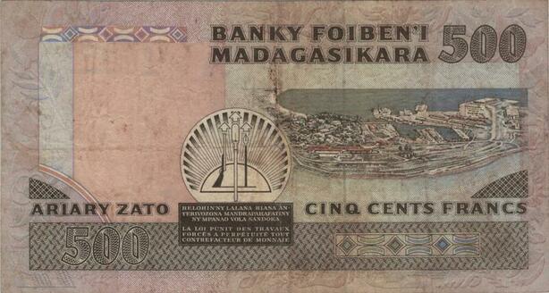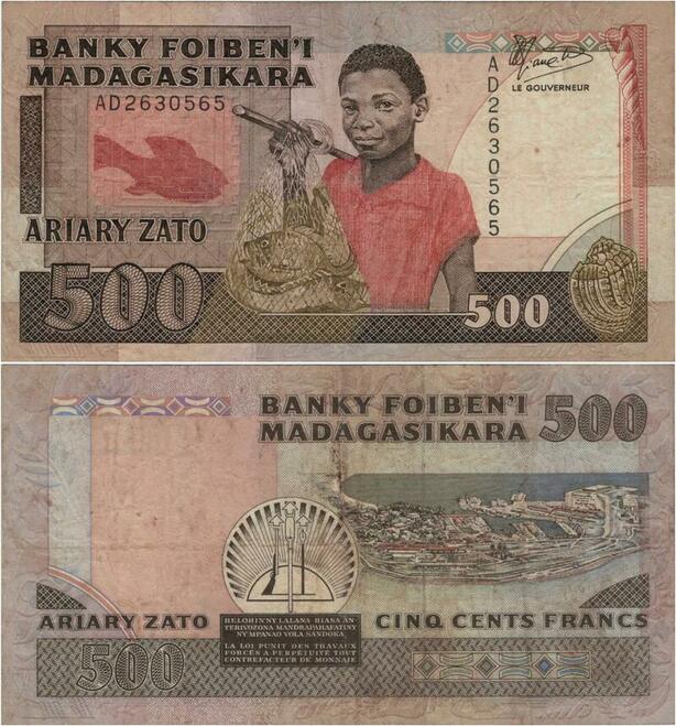 Q1011 Banknote Madagascar 500 Francs 100 Ariary 1988 -> Make Offer