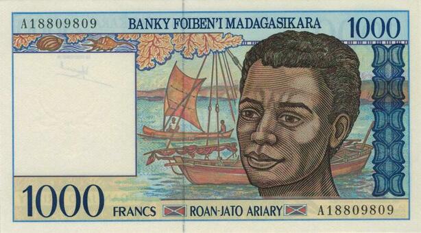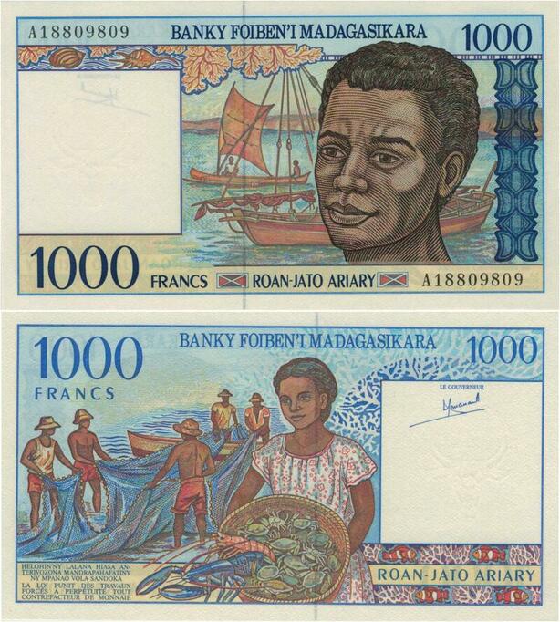 Q1015 Banknote Madagascar 1000 Francs 200 Ariary 1994 UNC MS66 - 68