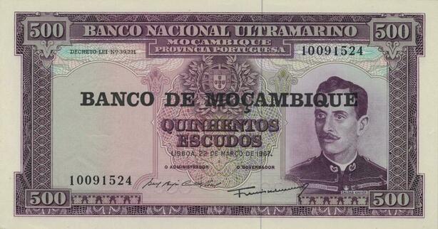 Q1022 Banknote Mozambique 500 Escudos 1967 UNC -> Make Offer