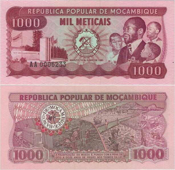 Q1026 Banknote Mozambique 1000 Meticais 1980 UNC -> Make Offer