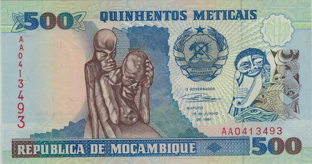 Q1028 Banknote Mozambique 500 Meticais 1991 UNC -> Make Offer