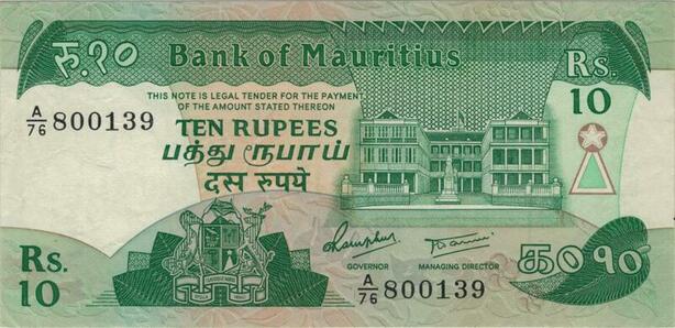 Q1032 Banknote Mauritius 10 Rupees 1985 UNC -> Make Offer