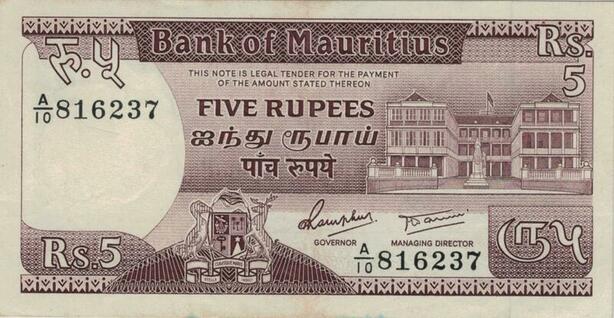 Q1033 Banknote Mauritius 5 Rupees 1985 UNC -> Make Offer