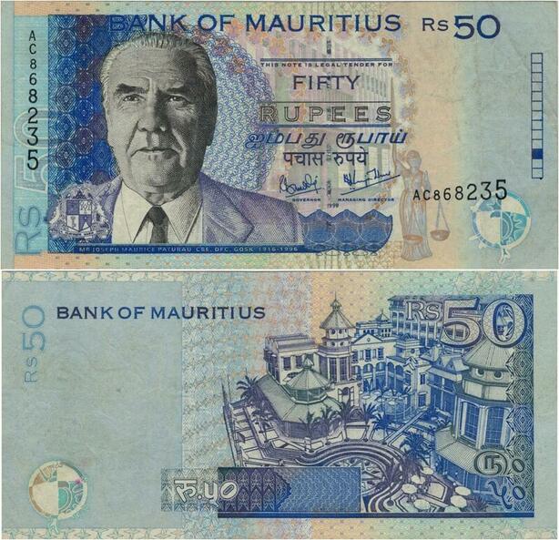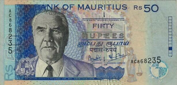 Q1035 Banknote Mauritius 50 Rupees Joseph Maurice Paturau 1999 AU+