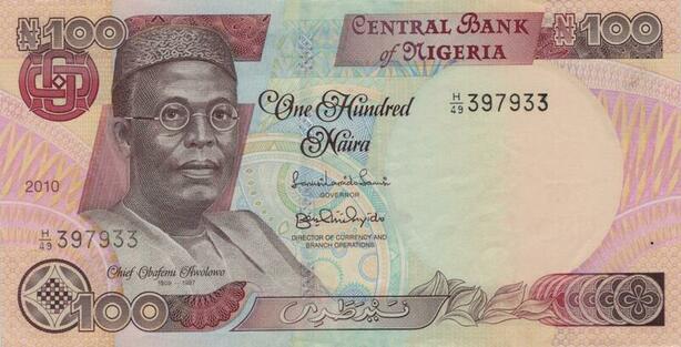 Q1042 Banknote Nigeria 100 Naira Chief Awolowo 2010 UNC -> Make Offer
