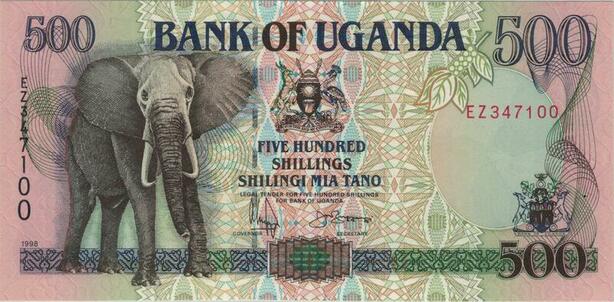 Q1067 Banknote Uganda 500 Shillings Elephant 1996 UNC -> Make Offer