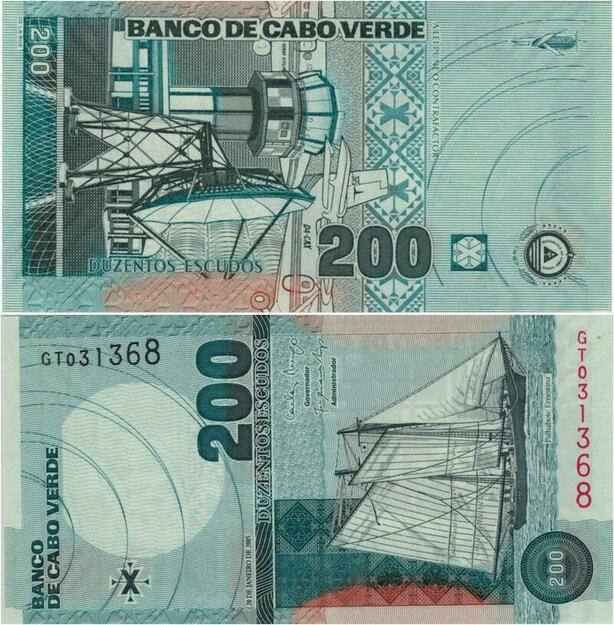 Q1078 Banknote Cape Verde 200 Escudos Sail 2005 UNC -> Make Offer
