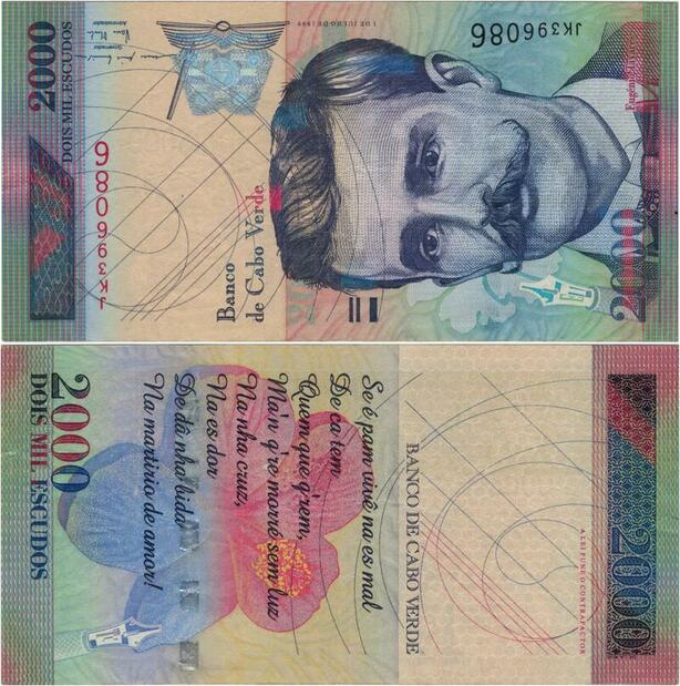 Q1079 Banknote Cape Verde 2000 Escudos Eugenio Tavares 1999 UNC -> Offer