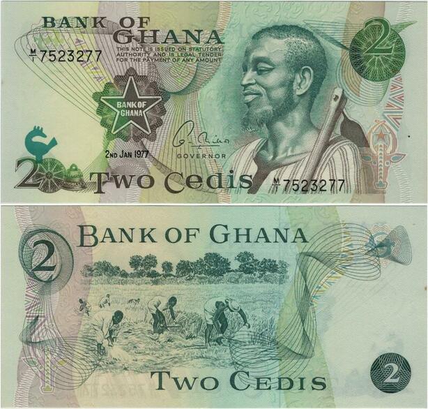 Q1089 Banknote Ghana 2 Cedis 1977 UNC -> Make Offer