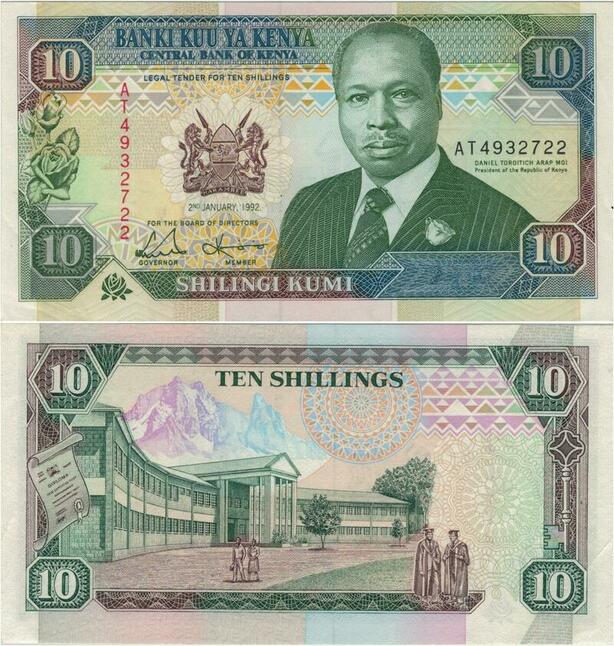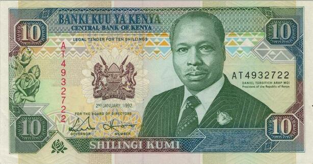 Q1094 Banknote Kenya 10 Shillings President Toroitich Arap Moi 1992 UNC