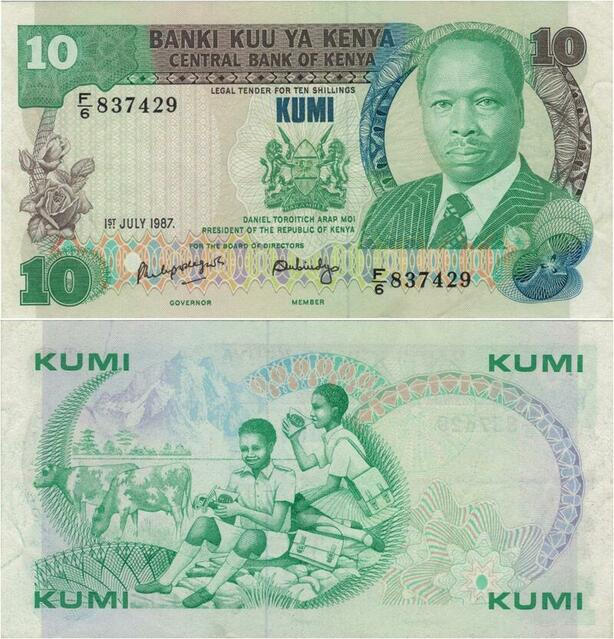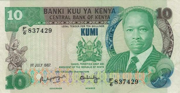 Q1095 Banknote Kenya 10 Shillings President Toroitich Arap Moi 1987 UNC