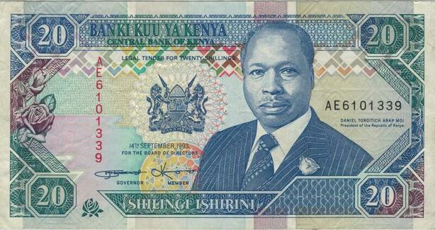 Q1097 Banknote Kenya 20 Shillings President Toroitich Arap Moi 1993 UNC