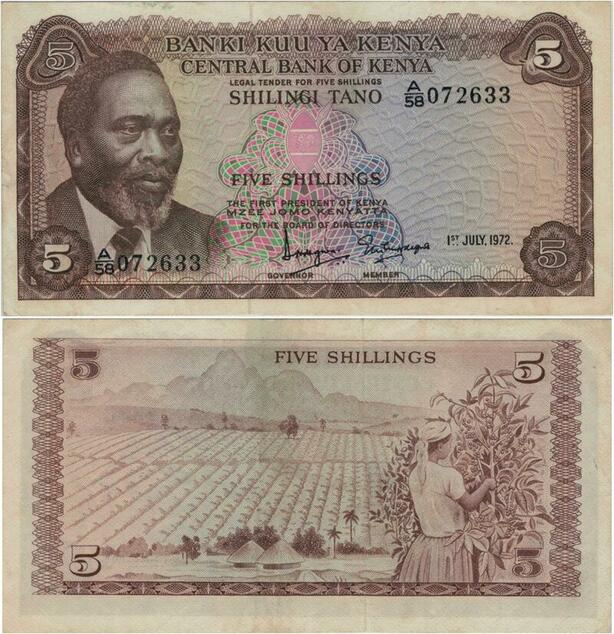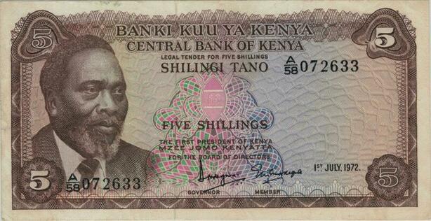 Q1100 Banknote Kenya 5 Shillings Mzee Jomo Kenyatta 1972 AU+ -> Make Offer