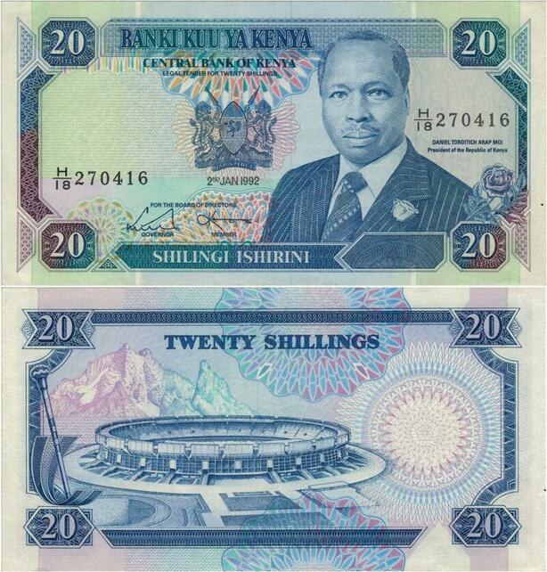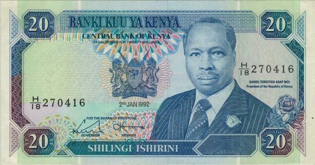 Q1101 Banknote Kenya 20 Shillings President Toroitich Arap Moi 1992 UNC