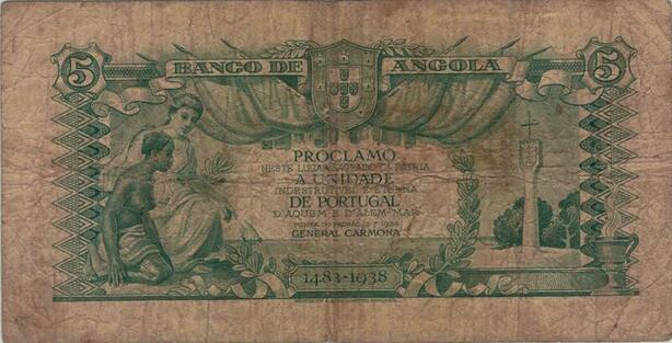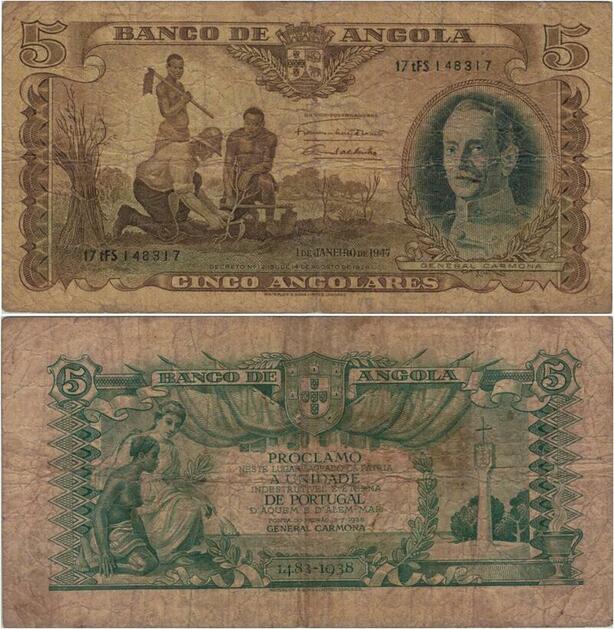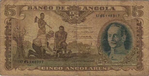 Q1108 Banknote Angola 5 Angolares Óscar Carmona 1947 -> Make Offer