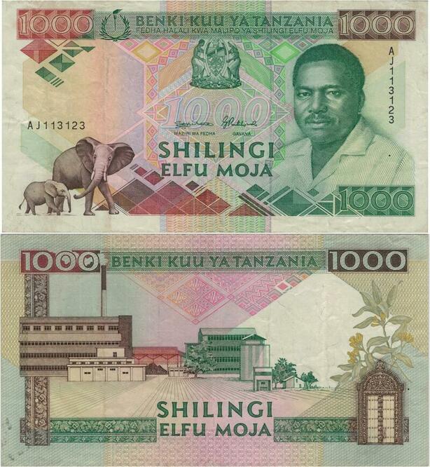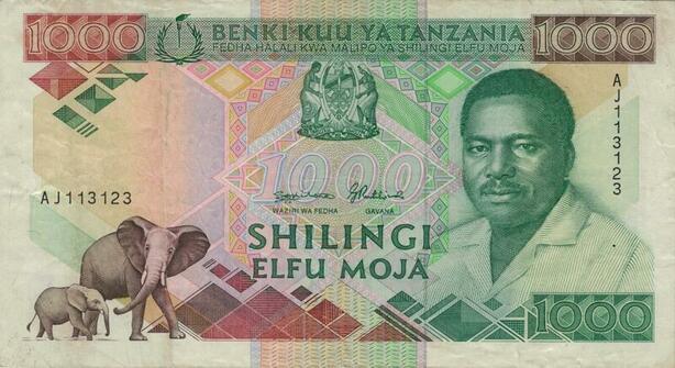 Q1120 Banknote Tanzania 1000 Shilingi President Mwiny 1993 AU -> Make Offer
