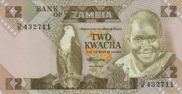 Q1129 Banknote Zambia 2 Kwacha President Kenneth Kaunda 1980 UNC -> Offer