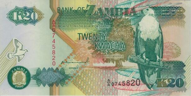 Q1138 Banknote Zambia 20 Kwacha Aigle 1992 UNC -> Make Offer