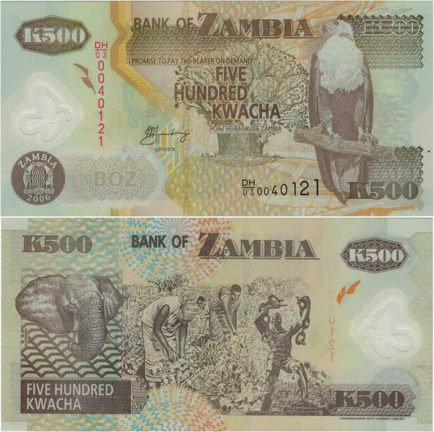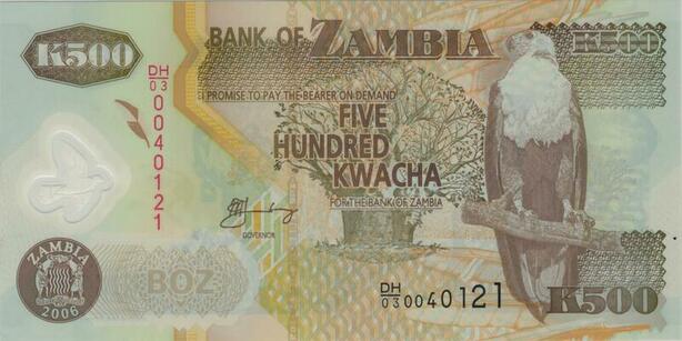 Q1139 Banknote Zambia 500 Kwacha Aigle 2006 UNC -> Make Offer