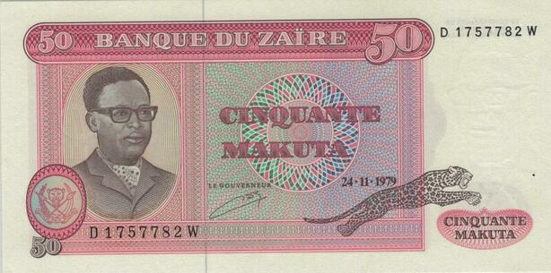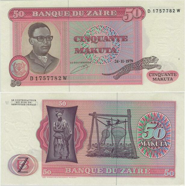 Q1145 Banknote Zaire Congo 50 Makuta Mobutu Sese Seko 1979 UNC -> M Offer