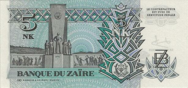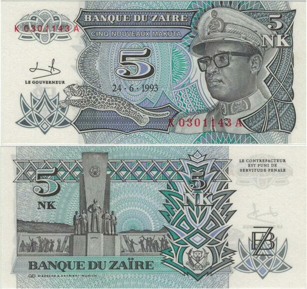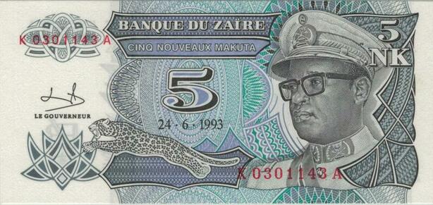 Q1146 Banknote Zaire Congo 5 Nouveaux Makuta Mobutu Seko 1993 UNC -> Offer