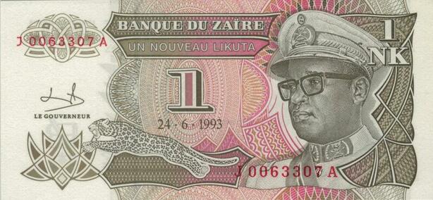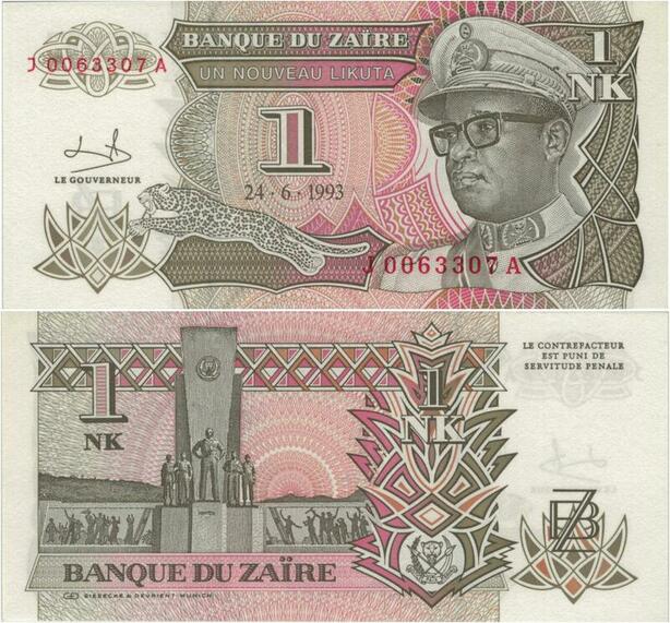 Q1147 Banknote Zaire Congo 1 Nouveau Likuta Mobutu Seko 1993 UNC -> Offer