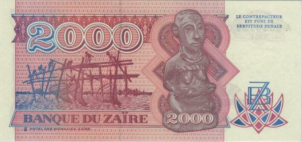 Q1148 Banknote Zaire Congo 2000 Zaires Mobutu Sese Seko 1991 UNC -> Offer