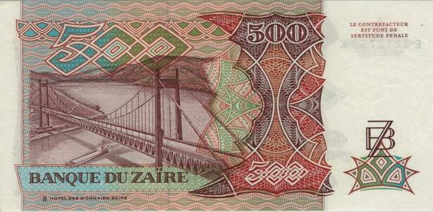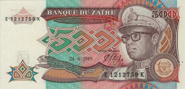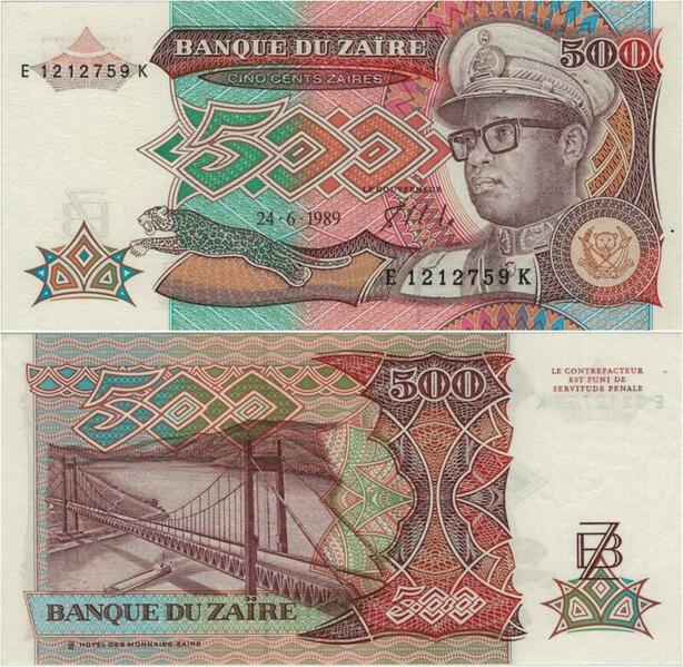 Q1150 Banknote Zaire Congo 500 Zaires Mobutu Sese Seko 1989 UNC -> Offer