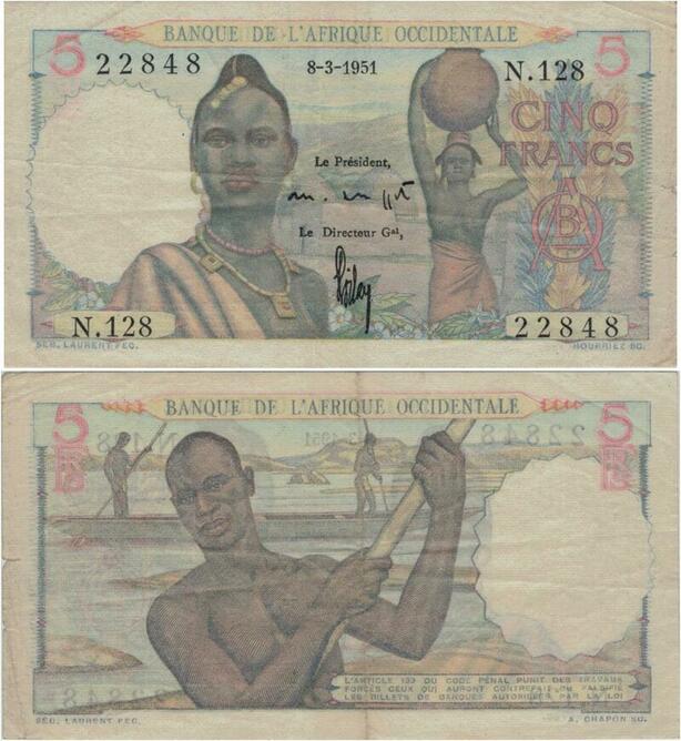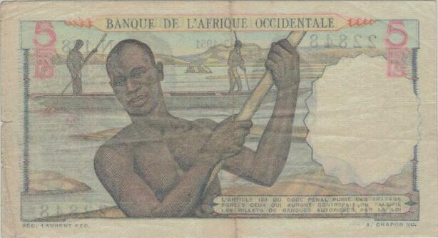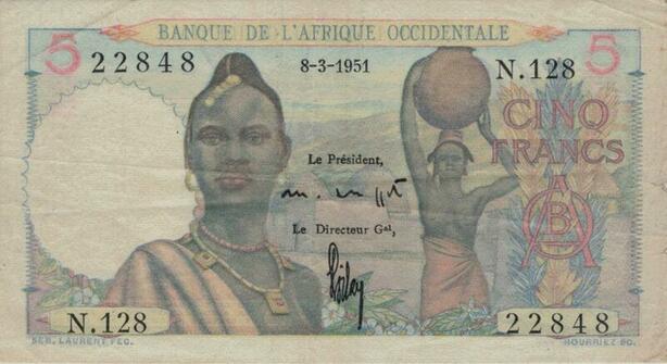 Q1257 Banknote French West Africa 5 Francs 1951 -> Make offer