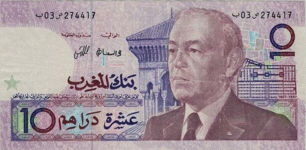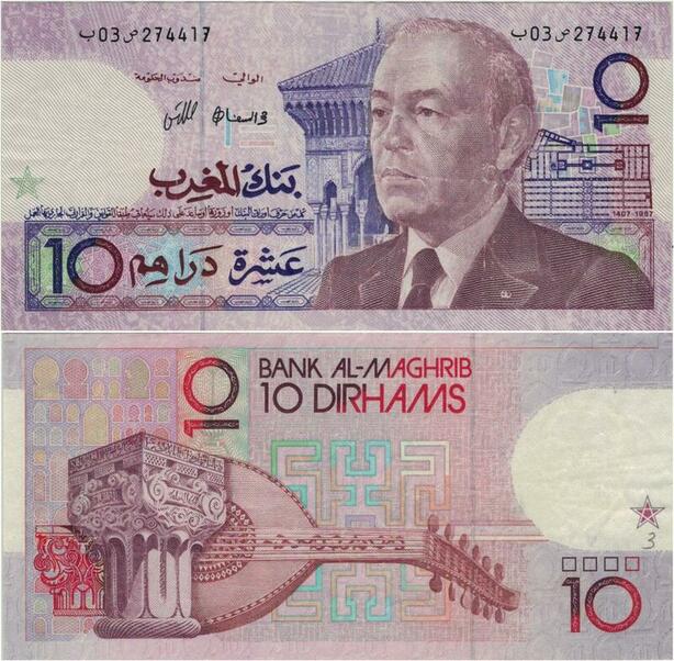 Q1263 Banknote Morocco 10 Dirhams King Hassan II 1987 1407 AU+ -> M offer