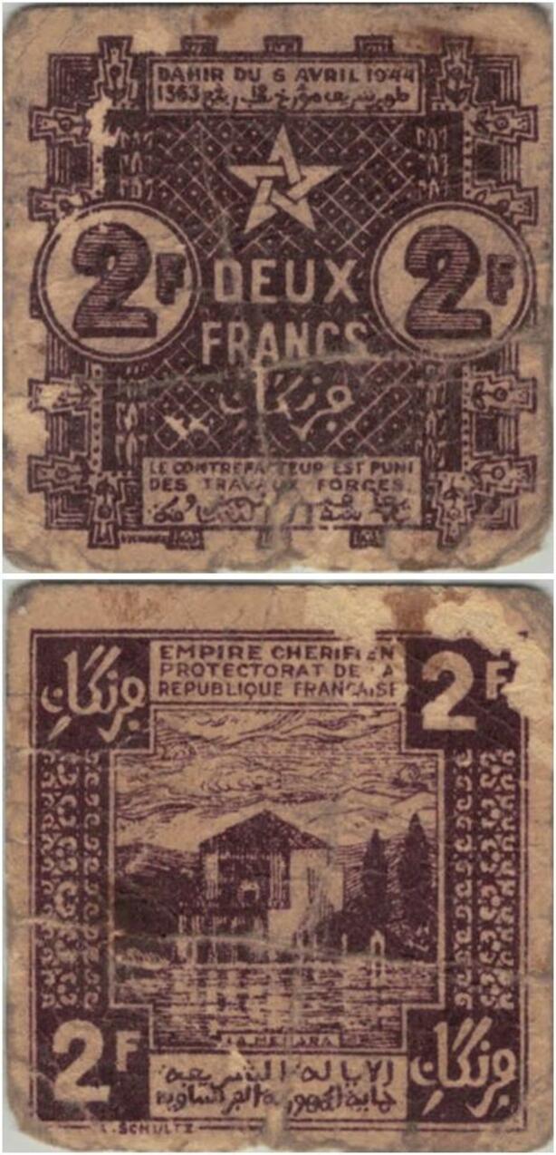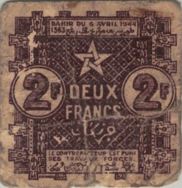Q1268 Banknote Morocco 2 Francs 1944 -> Make offer