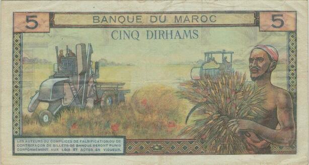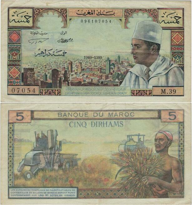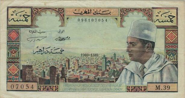 Q1271 Banknote Morocco 5 Dirhams 1969 - 1389 AH -> Make offer