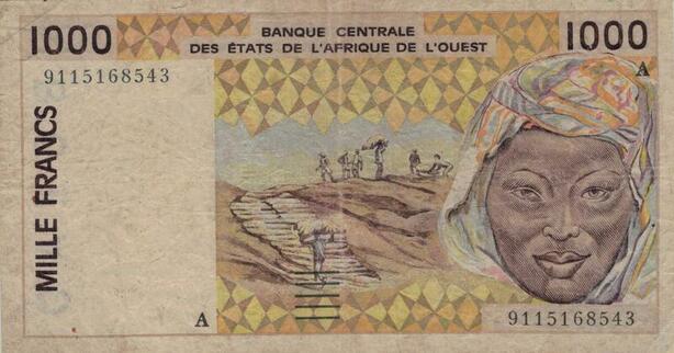 Q1282 Banknote Western African States 1000 Francs 1991-2003 -> Make offer