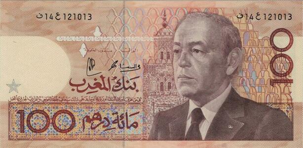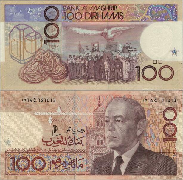 Q1303 Banknote Morocco 100 Dirhams King Hassan II 1987 - 1407 UNC ->Offer