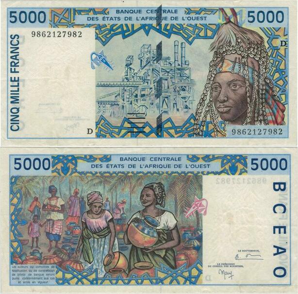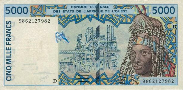 Q1315 Banknote West Africa 5000 Francs CFA 1998 UNC -> Make offer