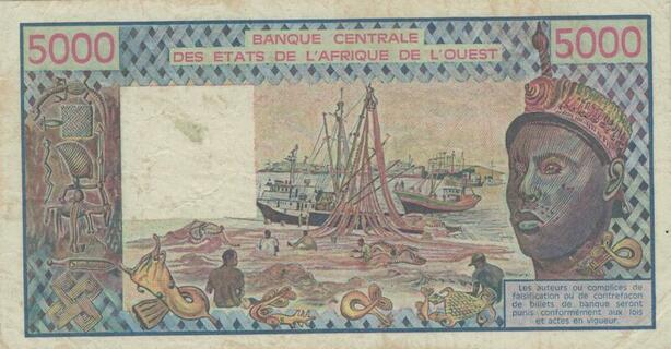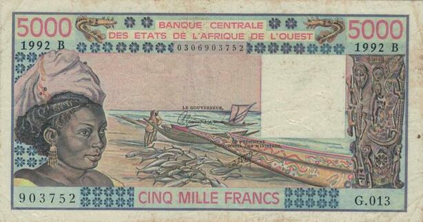 Q1316 Banknote West Africa 5000 Francs CFA 1992 -> Make offer