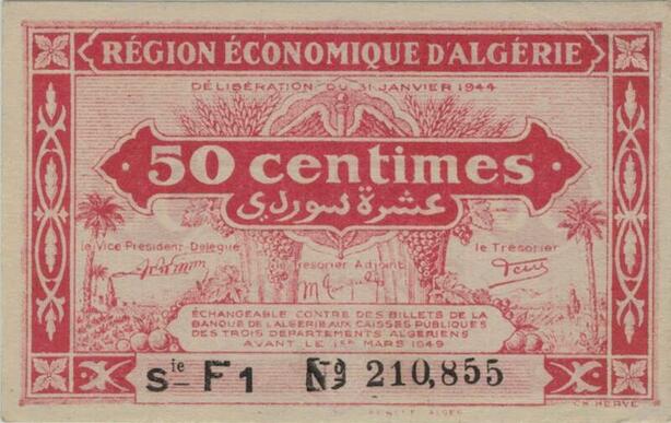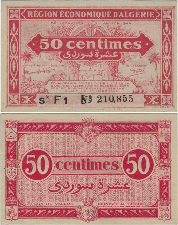 Q1328 Banknote Algeria 50 Centimes 1944 UNC -> Make offer