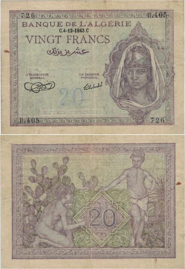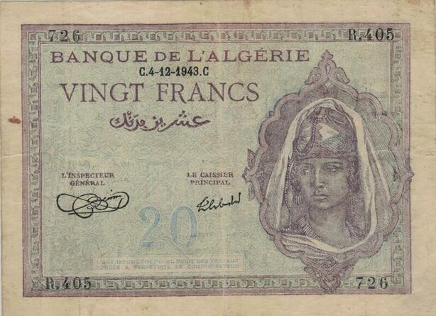 Q1330 Banknote Algeria 20 Francs 1943 -> Make offer