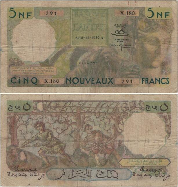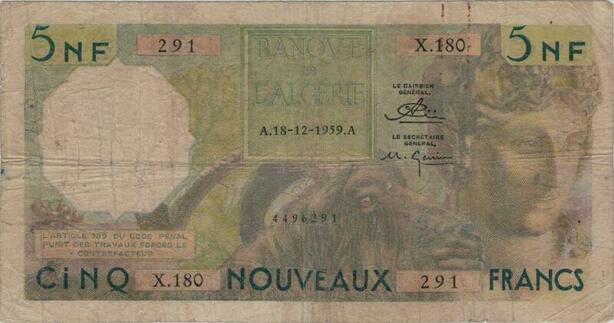 Q1332 Banknote Algeria 5 Nouveaux Francs 1959 -> Make offer
